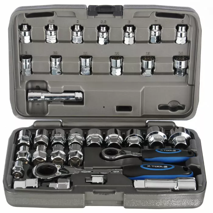 - 27 præcisionsformede momentnøgler med åbne ender på 4-24 mm