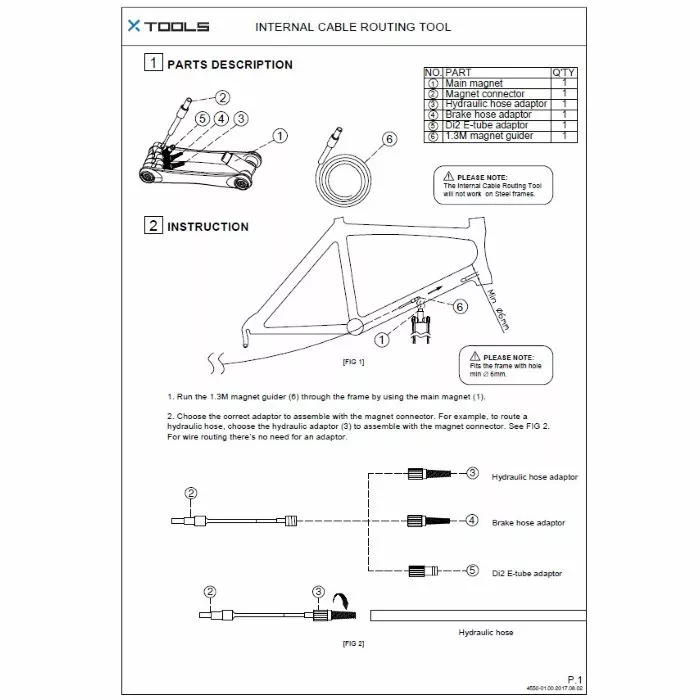 The LifeLine Internal Cable Routing Tool takes away the stress of feeding cables through frames. With a series of magnets, guide cable and adapters the tool allows you to feed inner cables, hydraulic hose and Di2 cable through your frame.