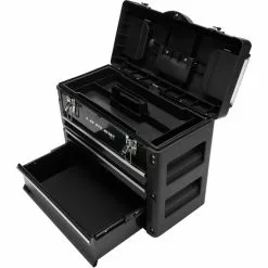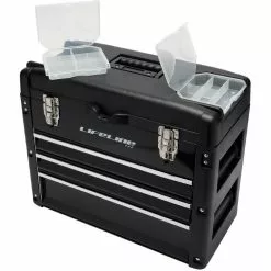 The LifeLine Pro 3 Drawer Work Station comes with 2 shallow drawers and 1 deep. In addition, lift the lid and you’ll find a tool tray and another large storage compartment.