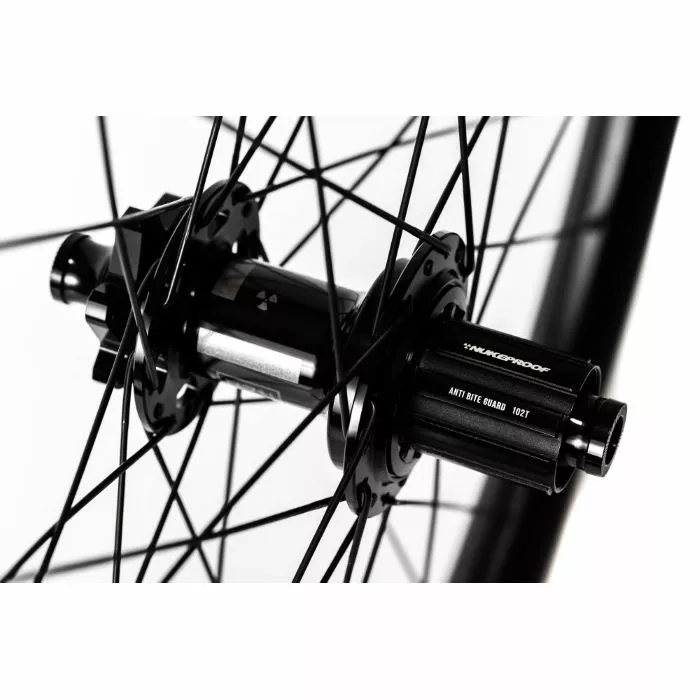The 148mm HG / XD hub can be converted to 141mm using end caps. The hub has also been machined to remove excess material and make it as strong and light as possible. Nukeproof has fitted these hubs with its louder pawls and springs, this gives the wheel a nice buzz as you head down the trail. If you prefer the quiet life, you can get the quieter ones which are available separately.